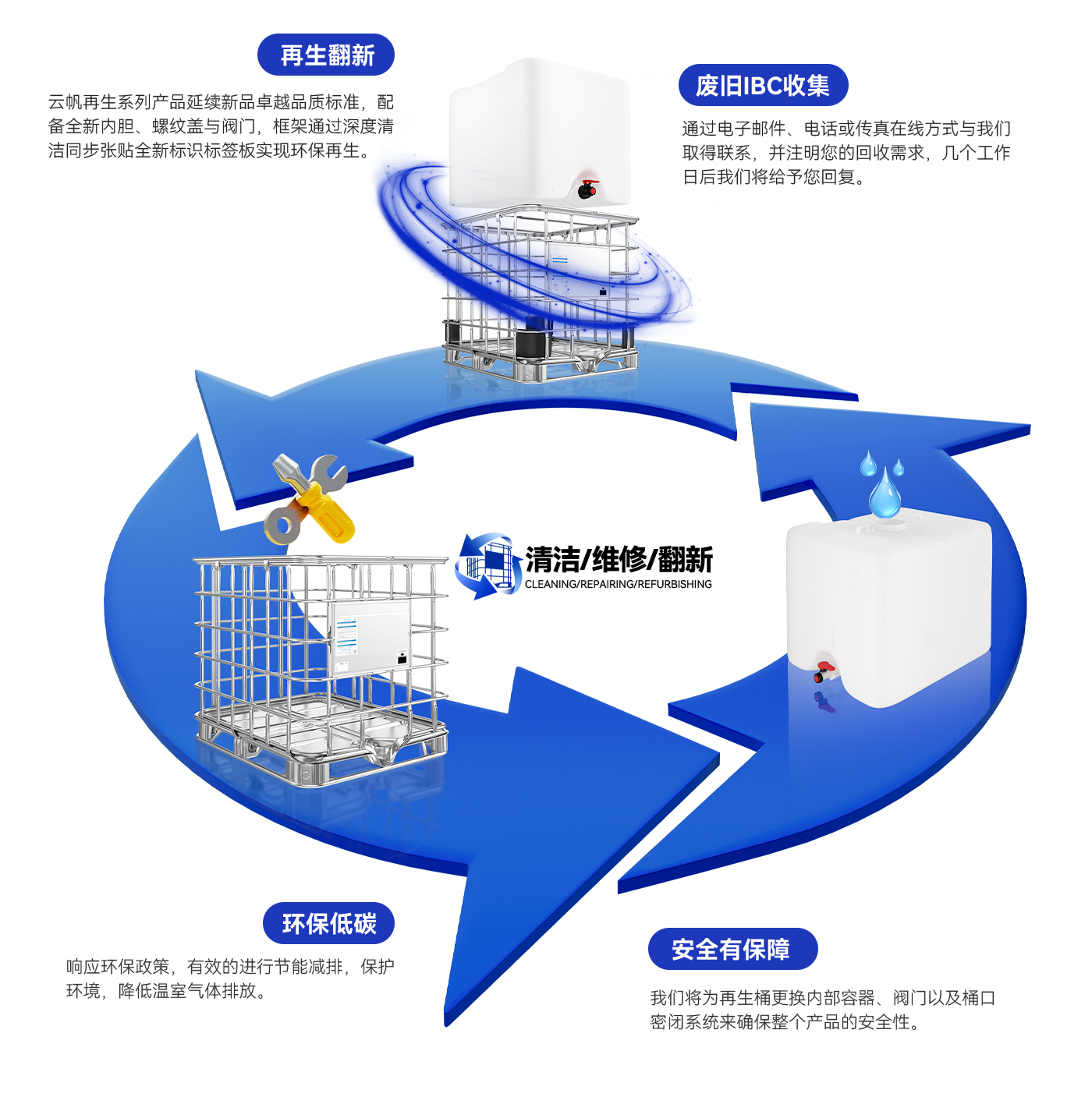 在回收条件范围内,将协助您以安全环保的方式还原处理IBC空桶