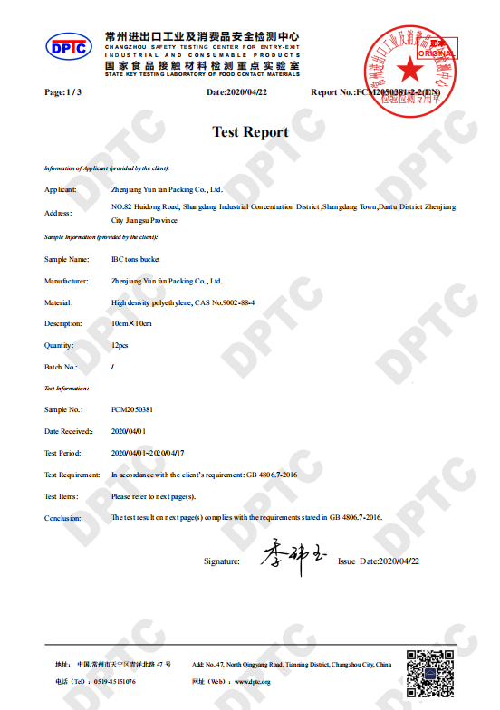 出口用食品接触报告